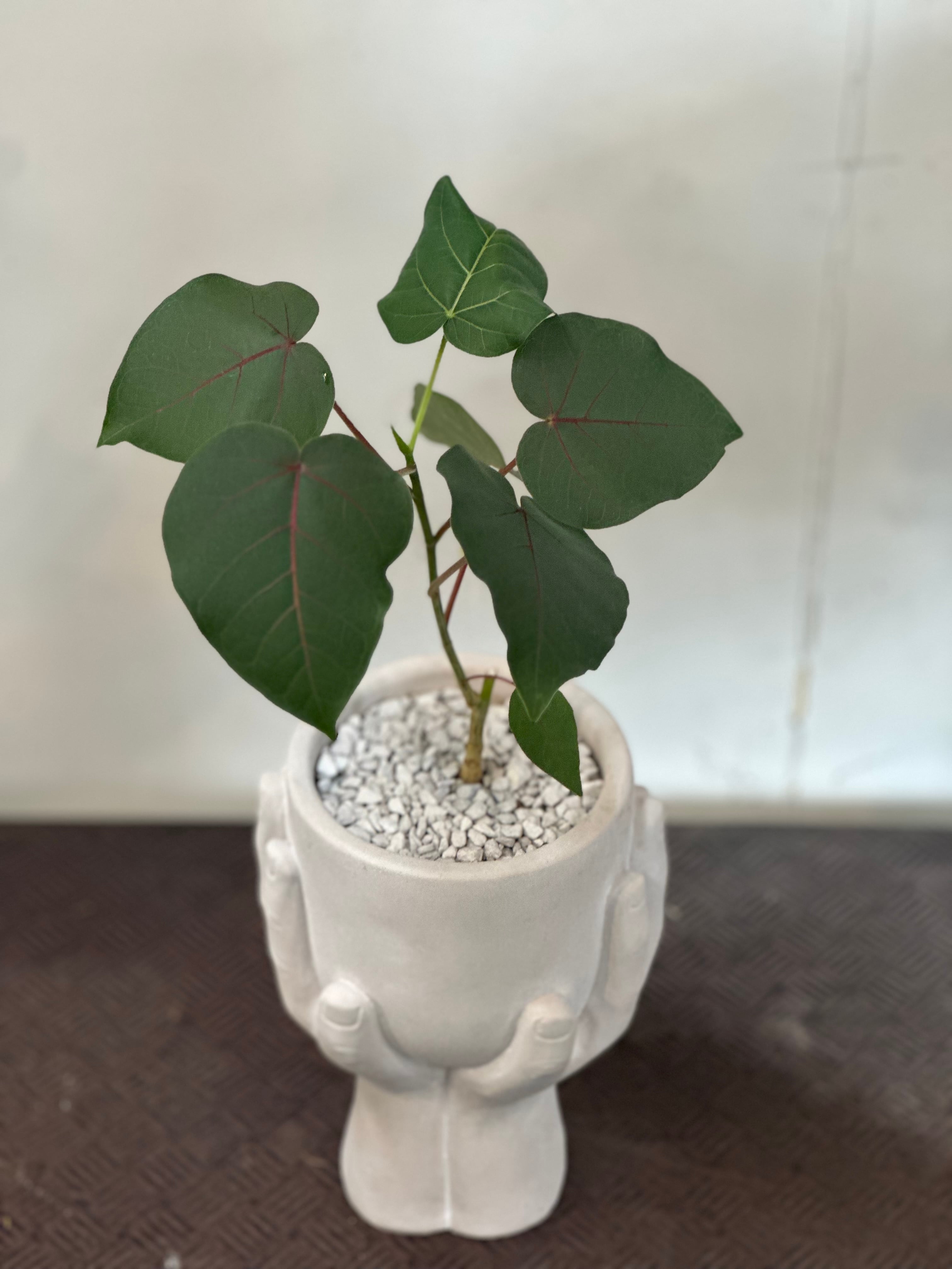 ペティオラリス 鉢SETは、ユニークな葉の形と豊かな緑色が魅力のインテリアグリーンです。その活き活きとした姿は、お部屋に自然の息吹をもたらし、心を和ませる存在となります。成長過程での葉の変化や小さな傷もこの植物の特徴として楽しんでいただければ幸いです!